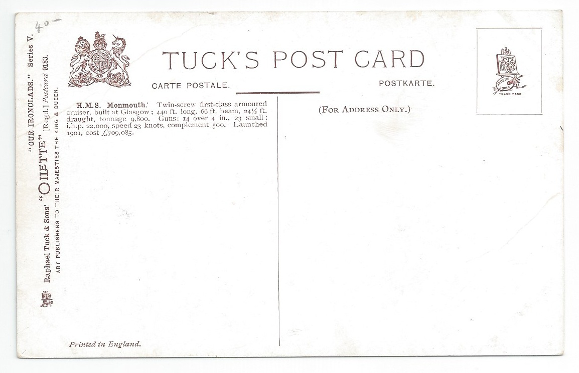 Postcard (Gale & Polden, Wellington Series) - Chatham 1905 postmark
