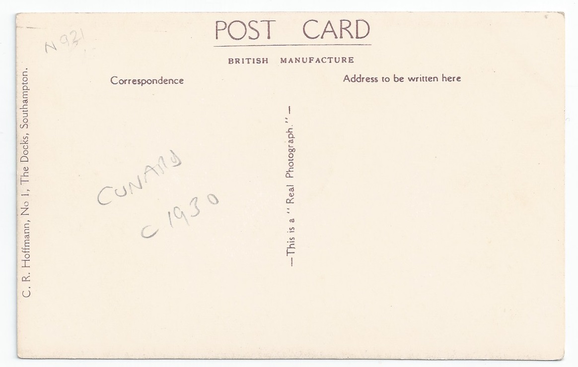 Unnamed, 'Ocean Dock, Southampton' Unused RP PC (FGO Stuart) Dated 1925
