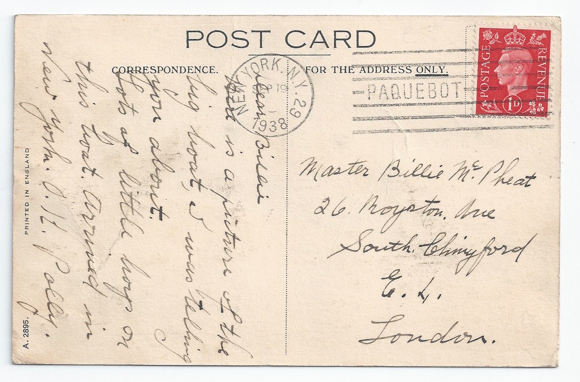 Alaunia Used RP PC - Liverpool 1929 & Paquebot postmarks