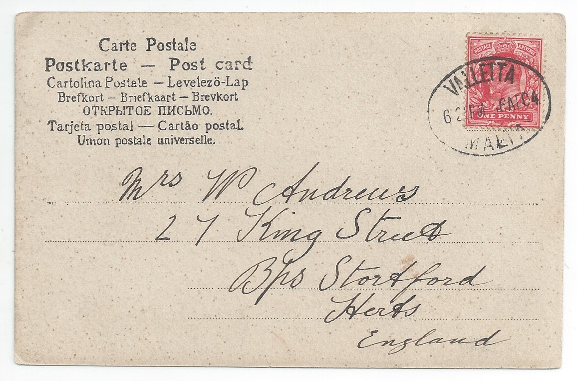 Valletta, Malta 1904 postmark