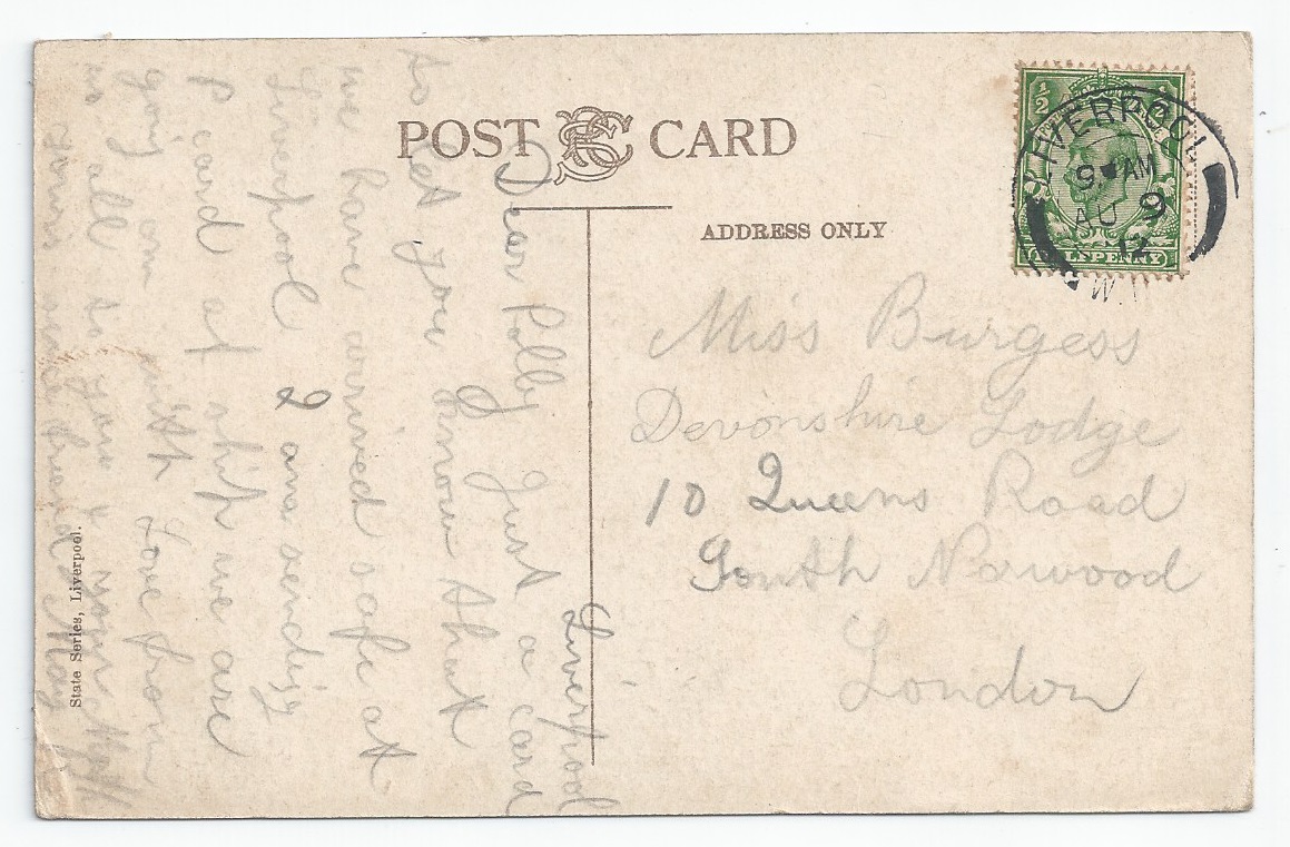 Postcard (State Series, Liverpool) - Liverpool 1912 postmark