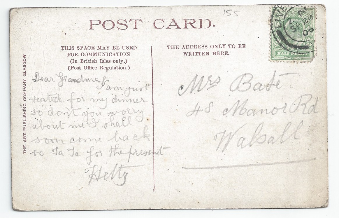 Postcard (Art Publishing Co, Glasgow) - Liverpool 1906 postmark