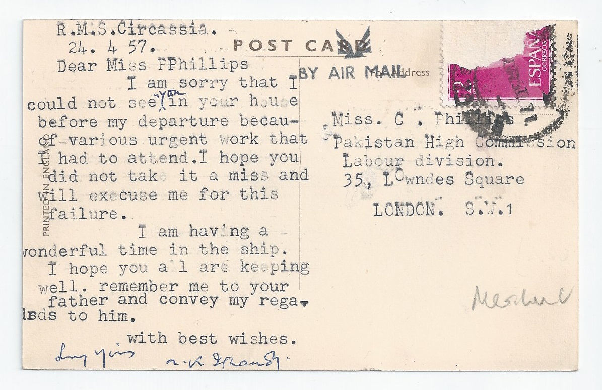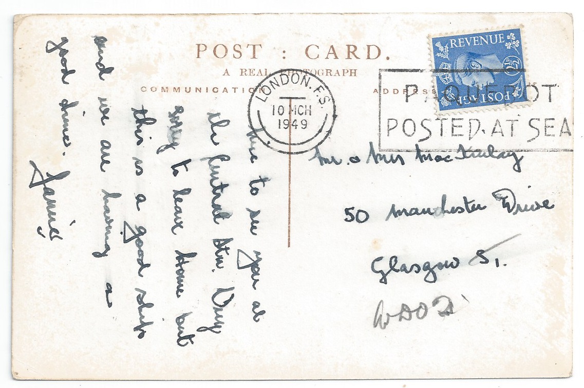Caledonia Used RP PC - Paquebot + London FS 1949 postmarks