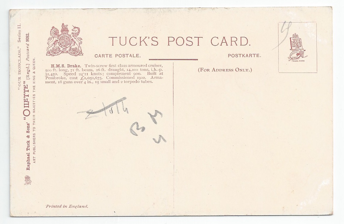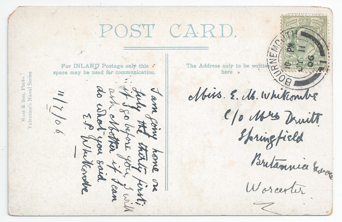 Postcard (Valentine's Naval Series) - Torquay 1905 postmark