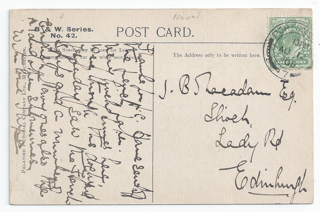 Postcard (Palatine Pictorial Co, Manchester) - Portsmouth 1905 postmark