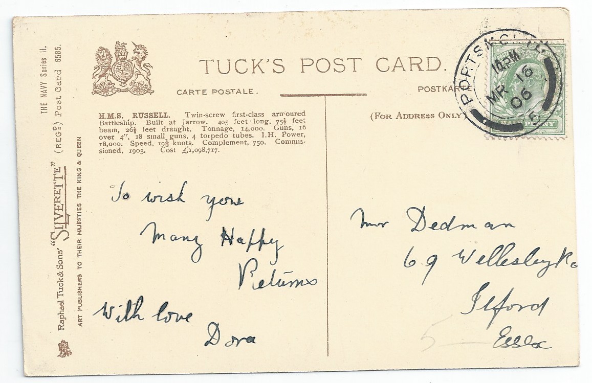 Postcard (Tuck) - Portsmouth 1906 postmark