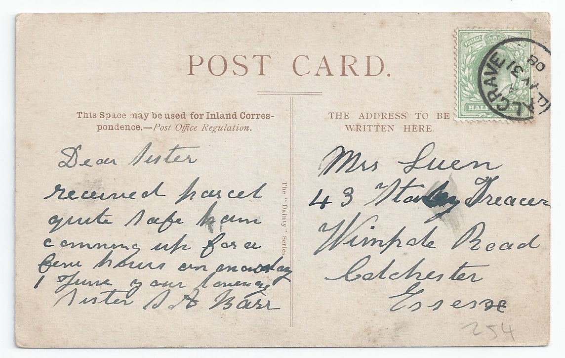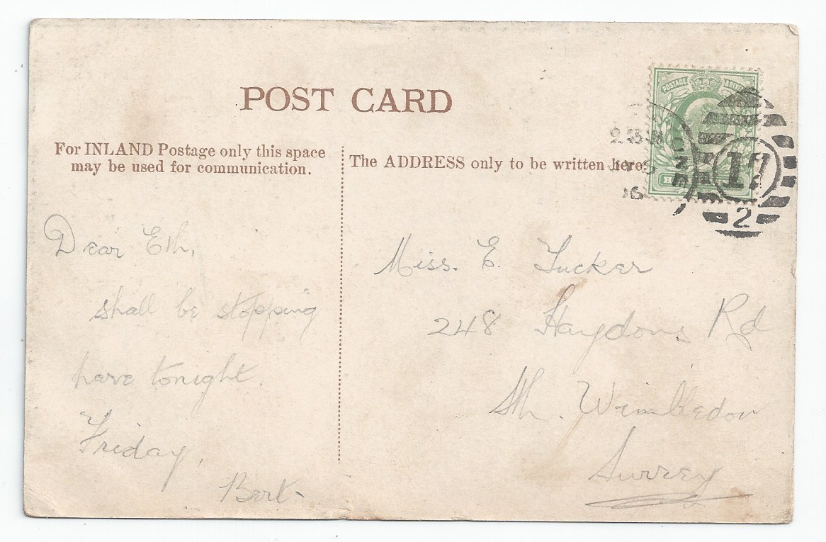 Used PC (Dainty Series) - Palgrave 1908 postmark