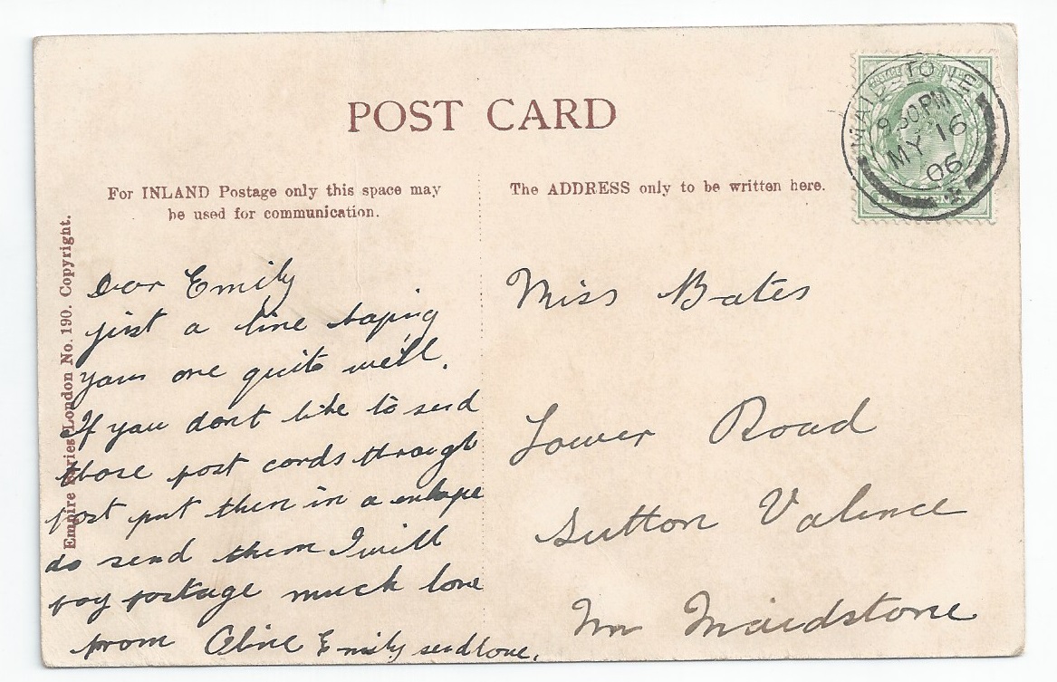 Used PC (Empire Series No.190) - Maidstone 1906 postmark
