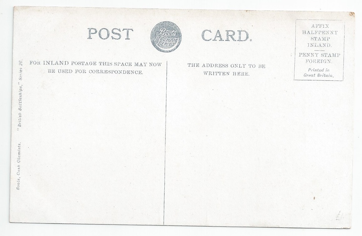 Postcard (Boots, "British Battleships" Series 26) - Godalming 1906 postmark