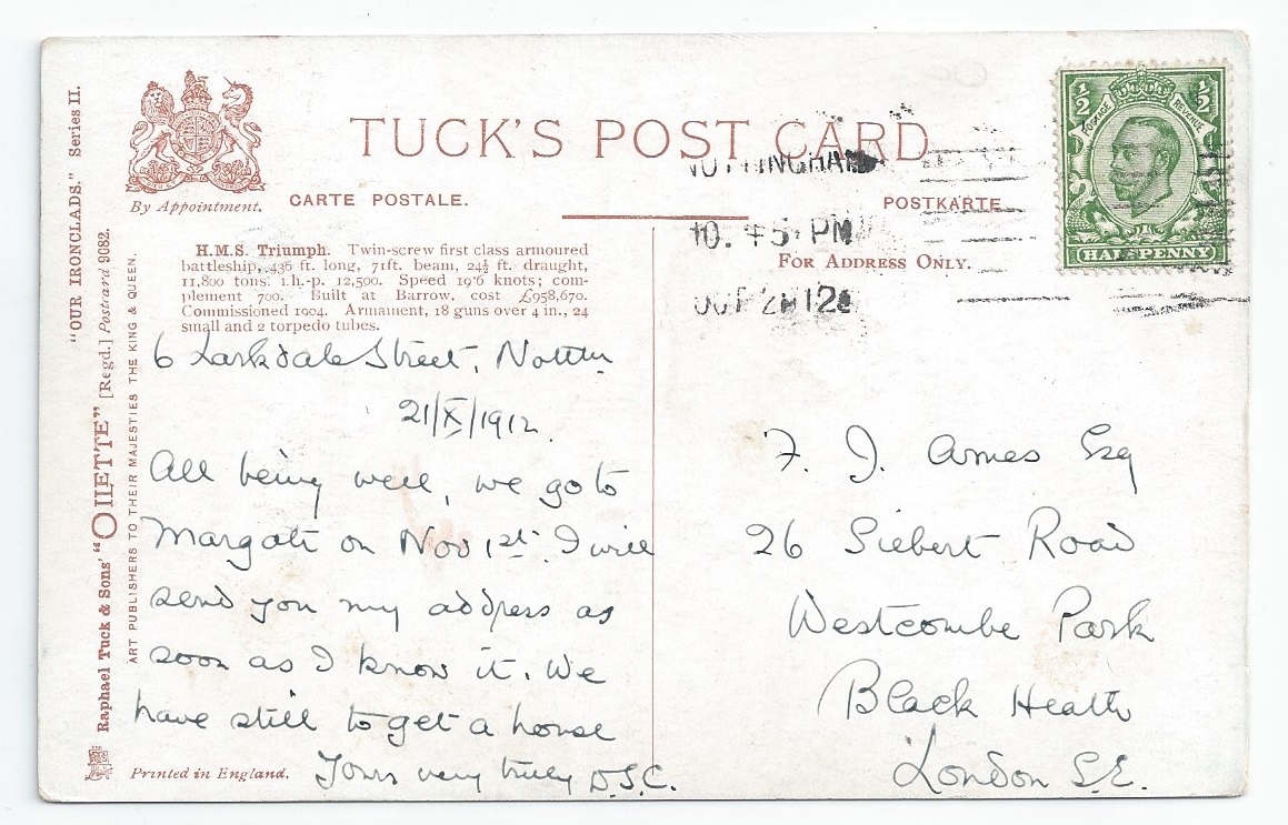 Used PC (Tuck) - Nottingham 1912 postmark