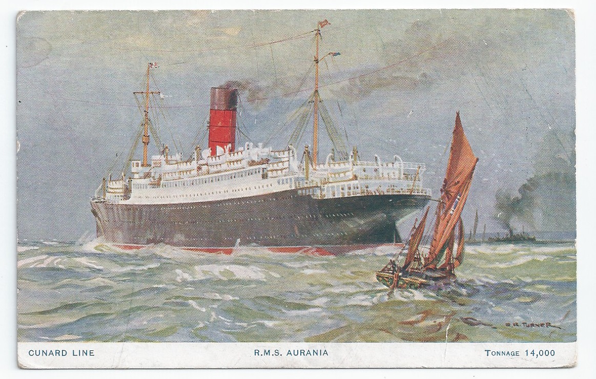 Aurania Unused PC C E Turner illustration Cunard Line Agency advert: Sercombe & Hayes, Dorchester