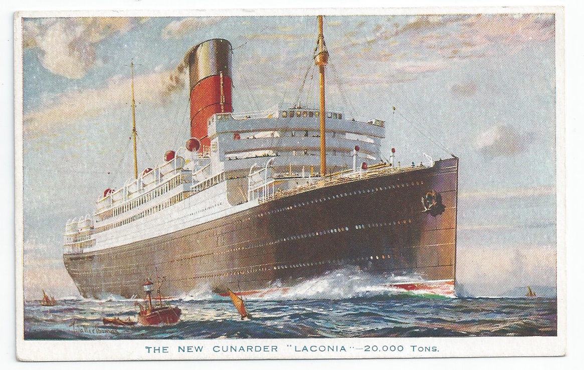 Carmania / Caronia Used PC - Le Havre 1919 postmark Sam J M Brown illustration