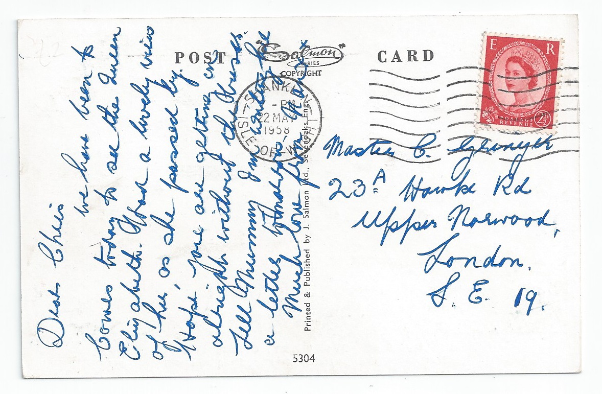 Queen Mary Used PC (Salmon) - Shanklin, Isle of Wight 1958 postmark
