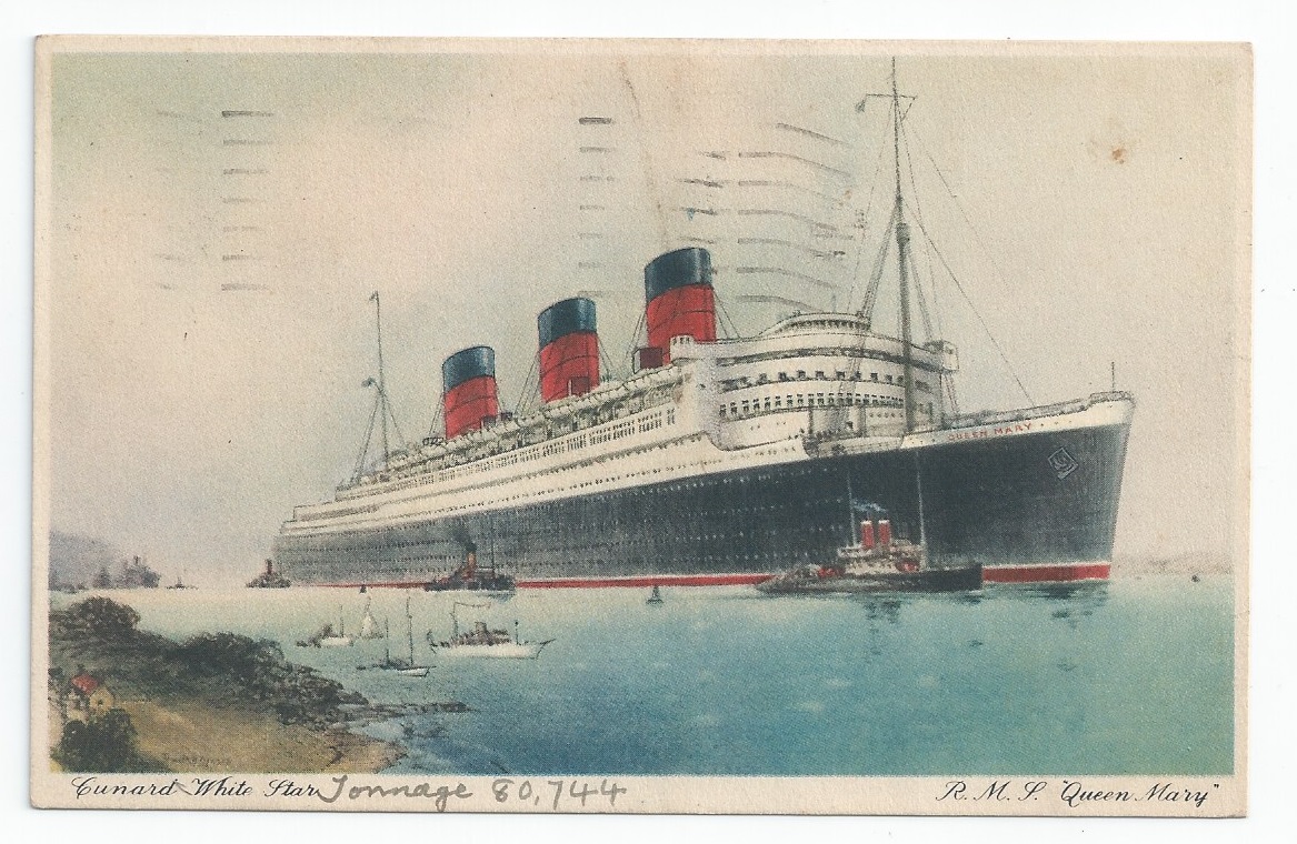 Queen Mary Used PC - Southampton 1936 postmark Frank H Mason illustration