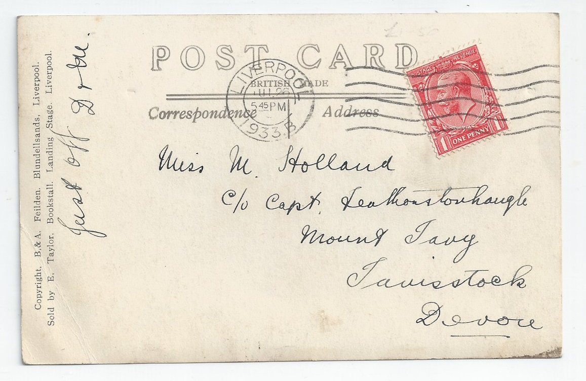 Apapa Used RP PC (B&A Feilden / E Taylor Bookstall, Liverpool Landing Stage) - Liverpool 1933 postmark