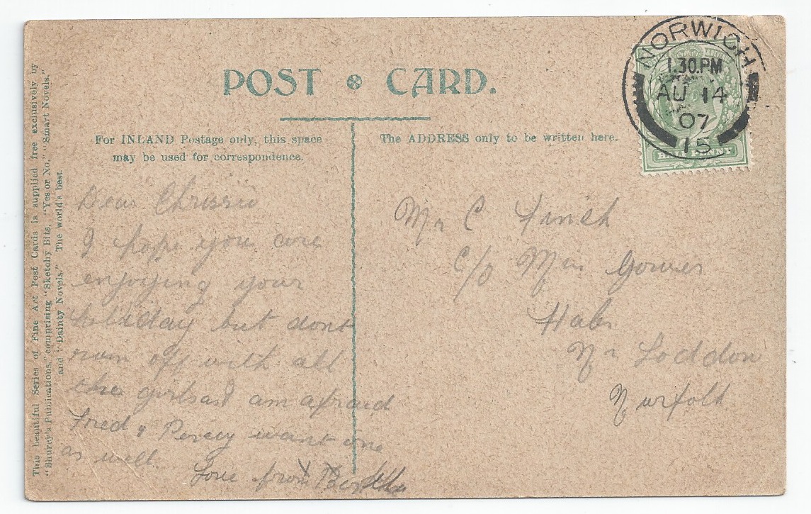Used PC (Shurey's Publications) - Norwich 1907 postmark