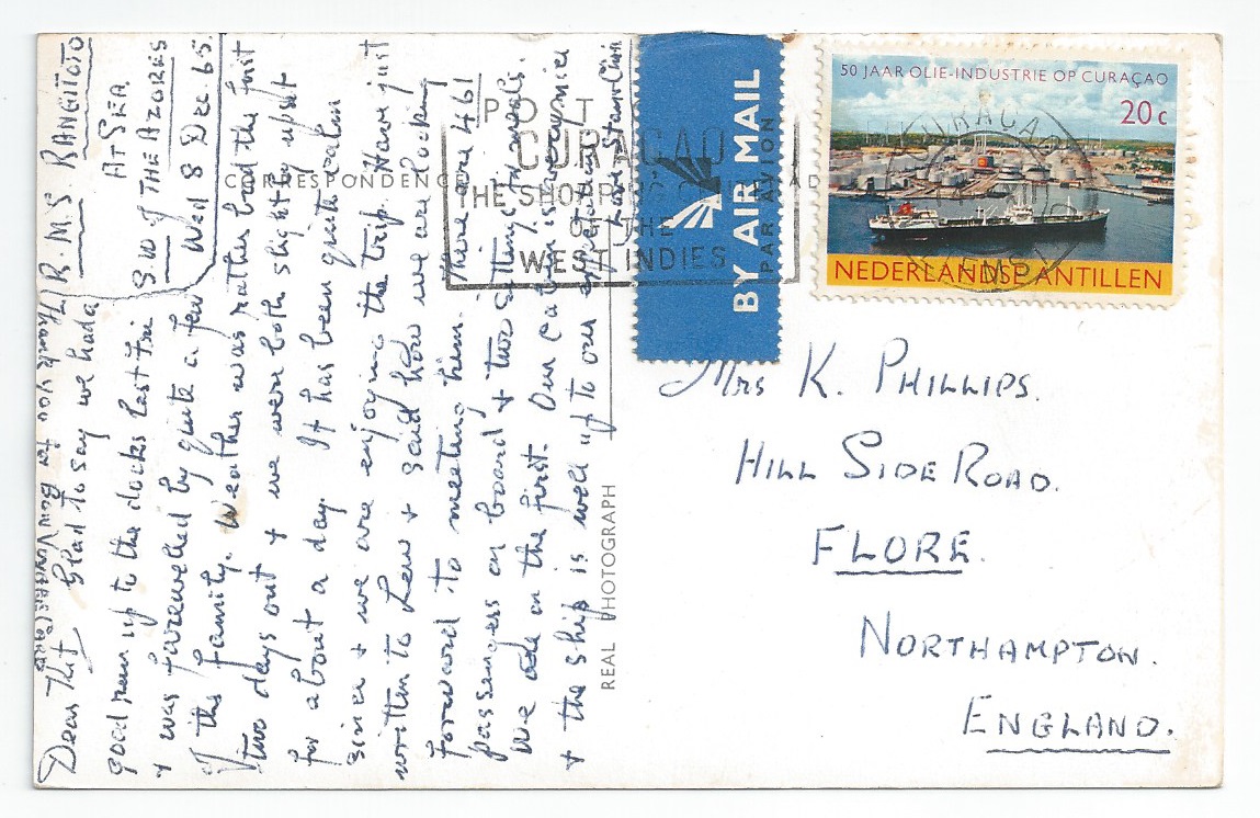 Rangitoto Used RP PC - Willemstad, Curaçao 1965 postmark