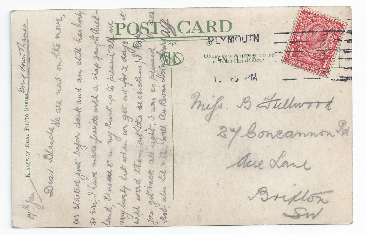 Ruahine Used RP PC (WHS Kingsway) - Plymouth 1913 postmark