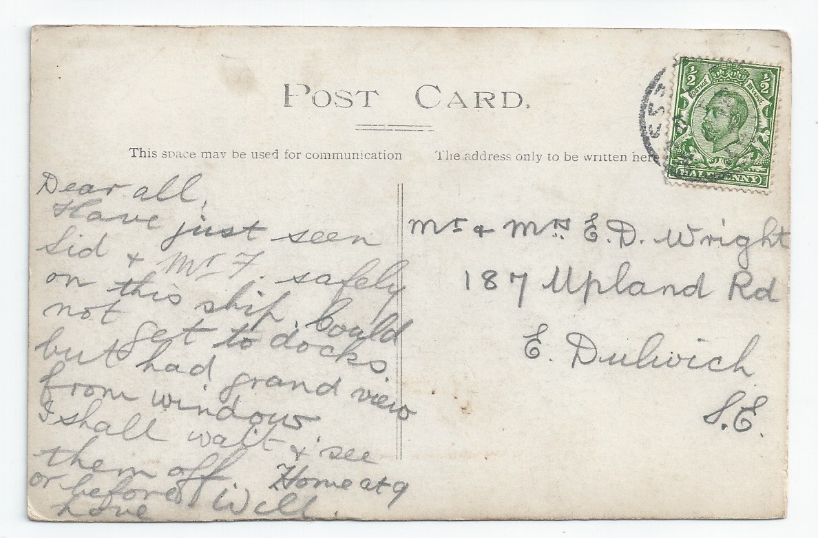 Rawalpindi Used PC - Southampton 1927 postmark