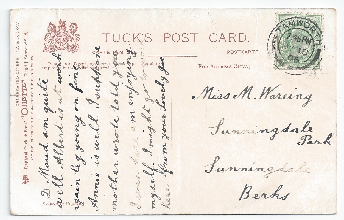 Egypt Used PC (Tuck) - Tamworth 1905 postmark Fred Simpson illustration