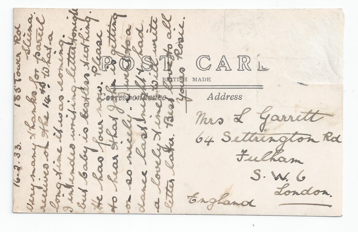 Strathnaver Used PC - message dated 1933