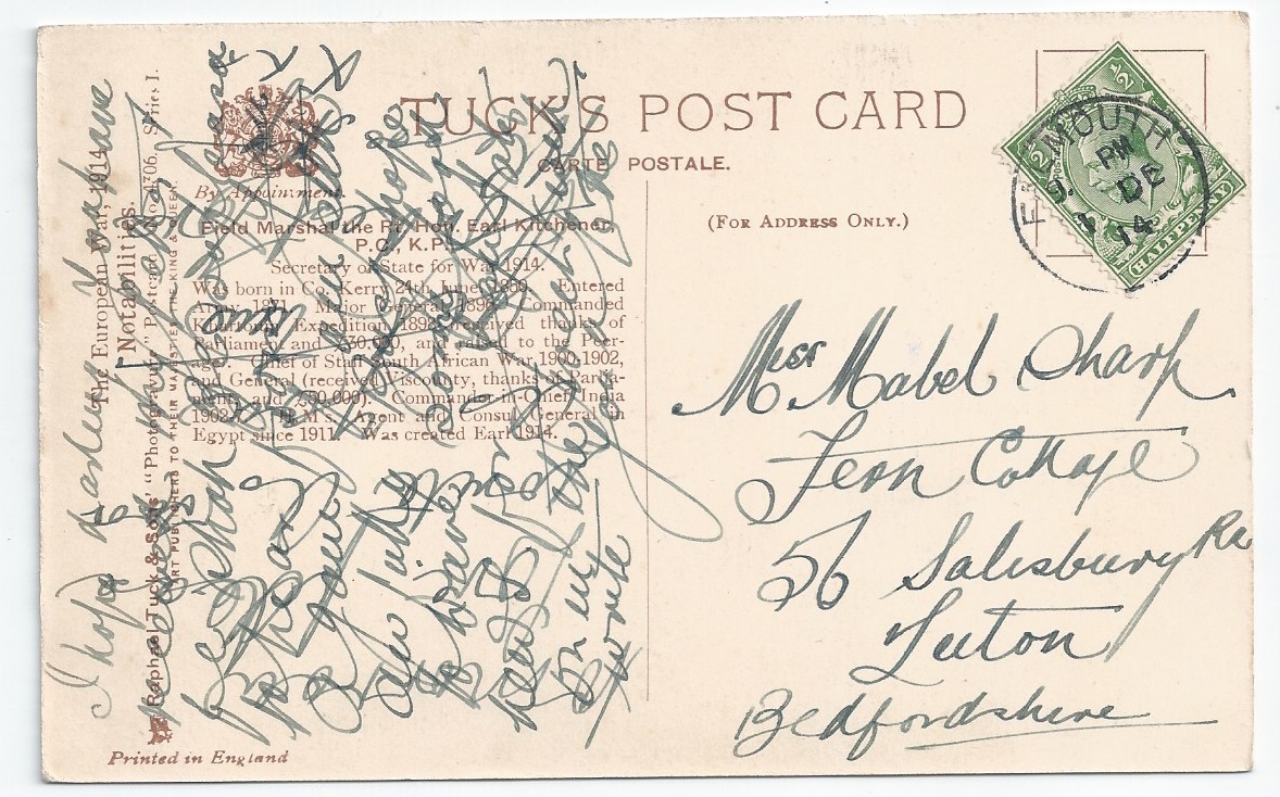 Frederick Roberts Used PC (Tuck) - Falmouth 1914 postmark