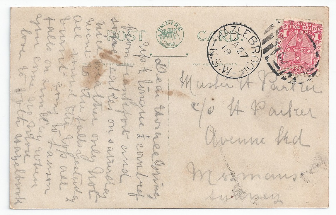 Real photo postcard (Empire) - Hazlebrook, NSW duplex postmark