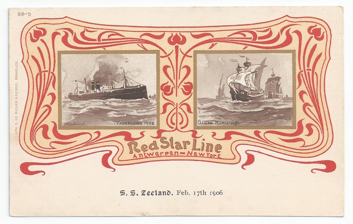 Red Star Line Chromo-litho postcard (O De Rycker & Mendel, Bruxelles)