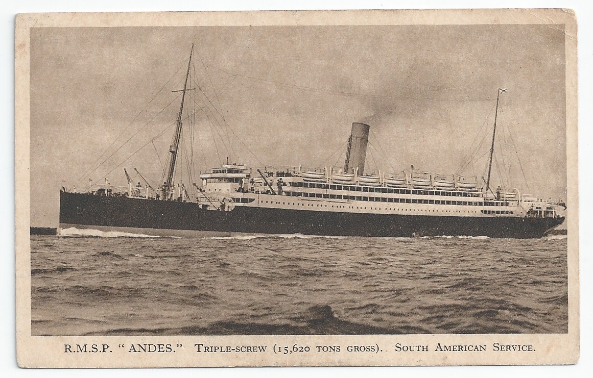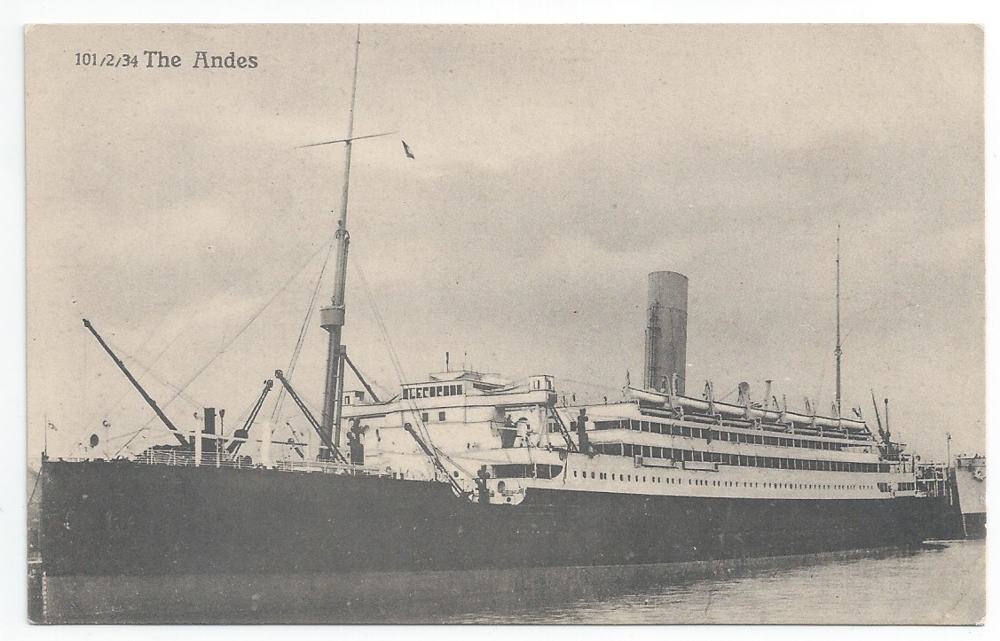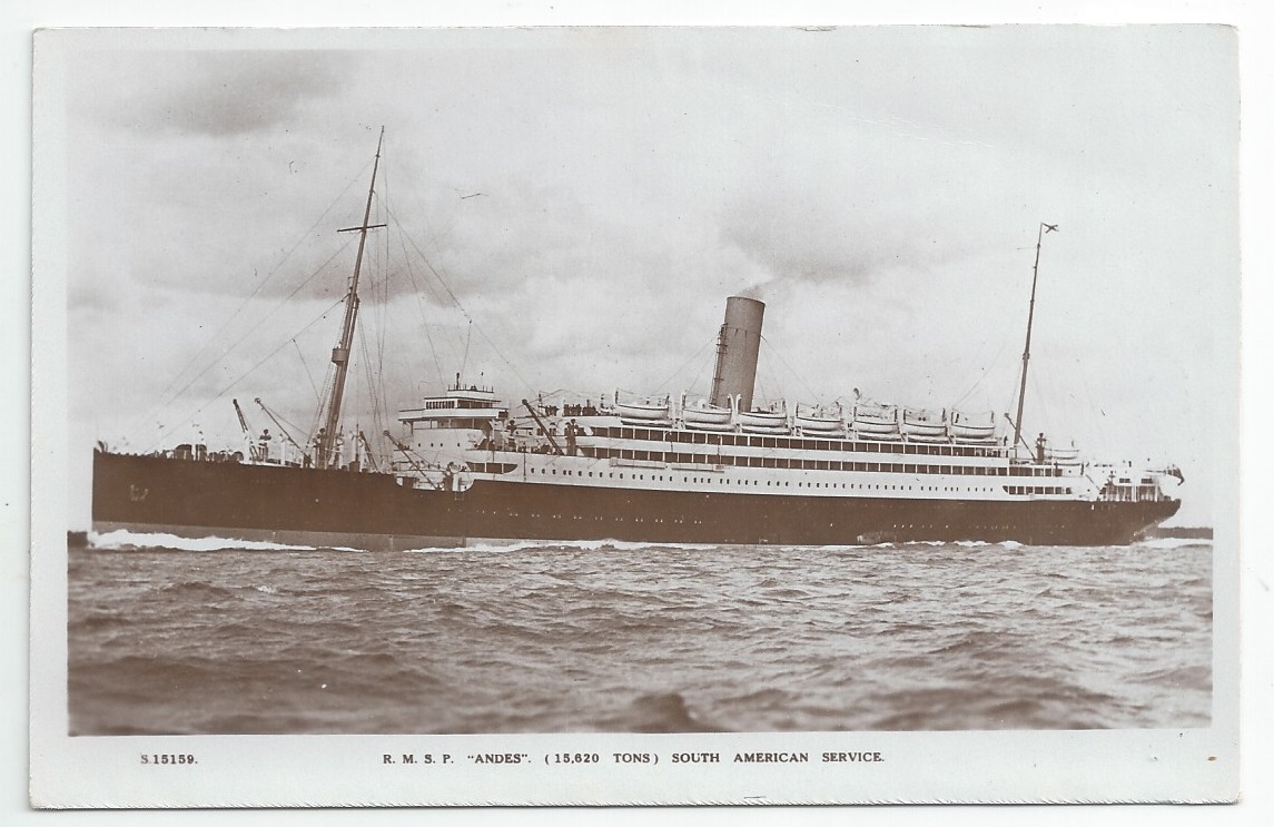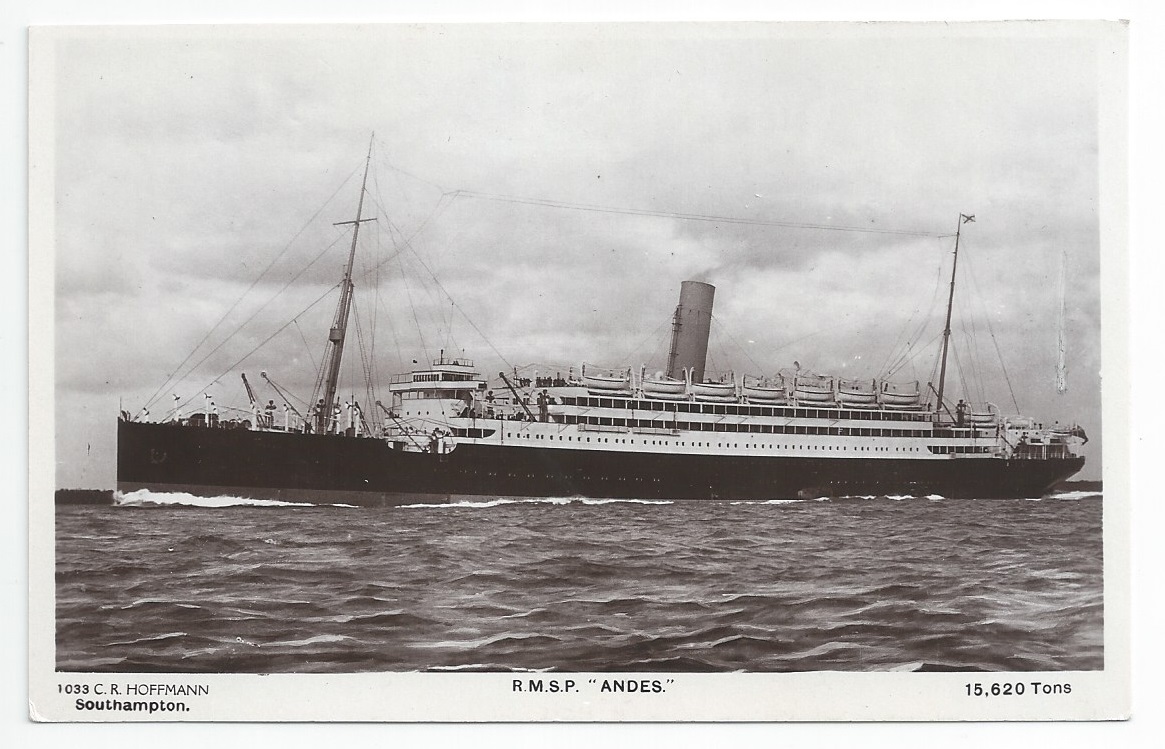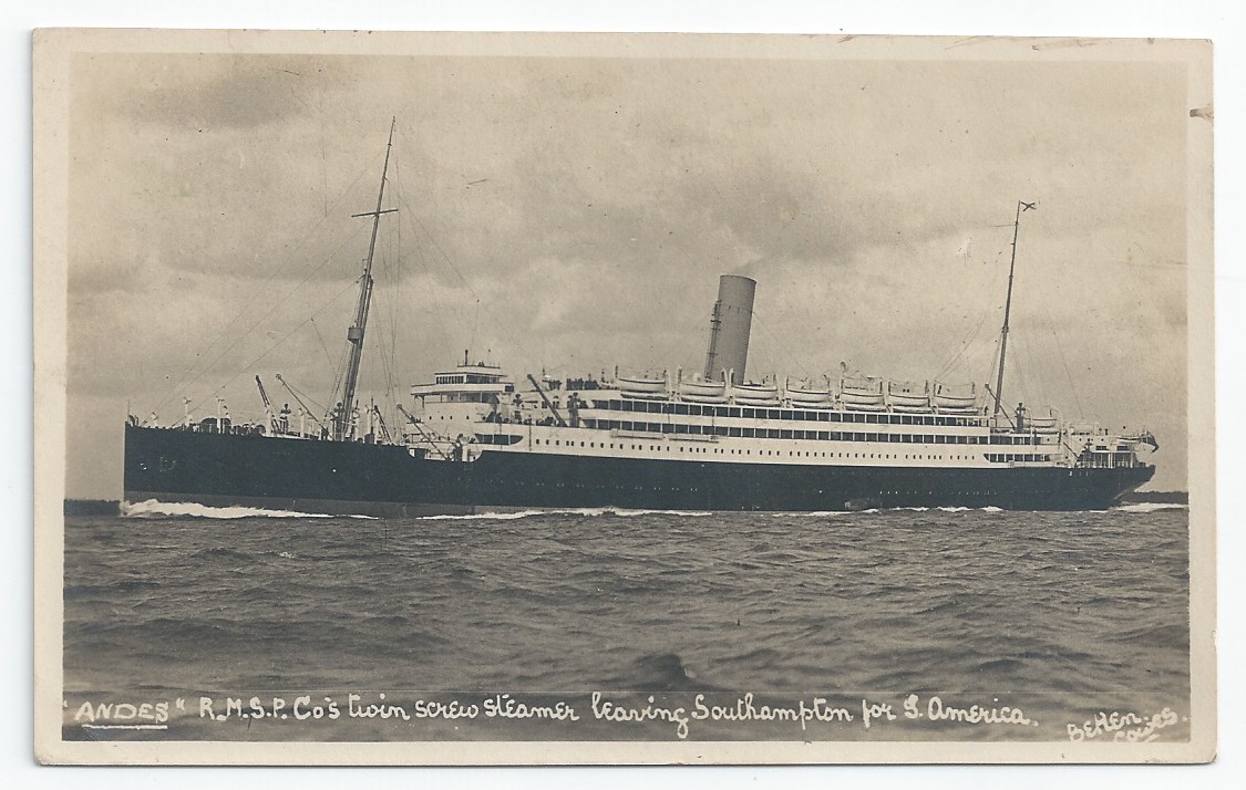 Andes leaving Southampton, 1921 Real photo postcard (Beken, Cowes)