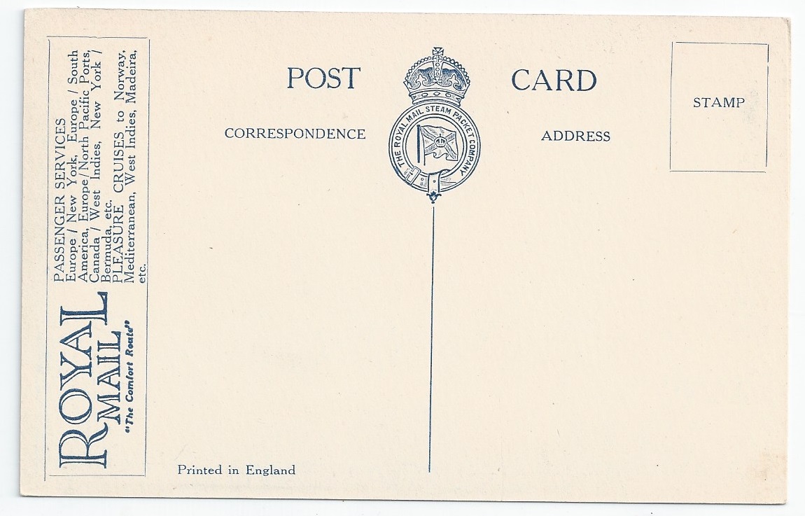 Barbados Chromo-litho postcard - Barbados + "Posted on the High Seas" postmarks