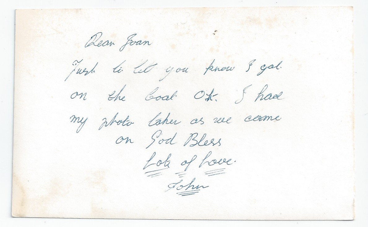 HMT Andes (troopship), 1945 Homemade postcard-size card