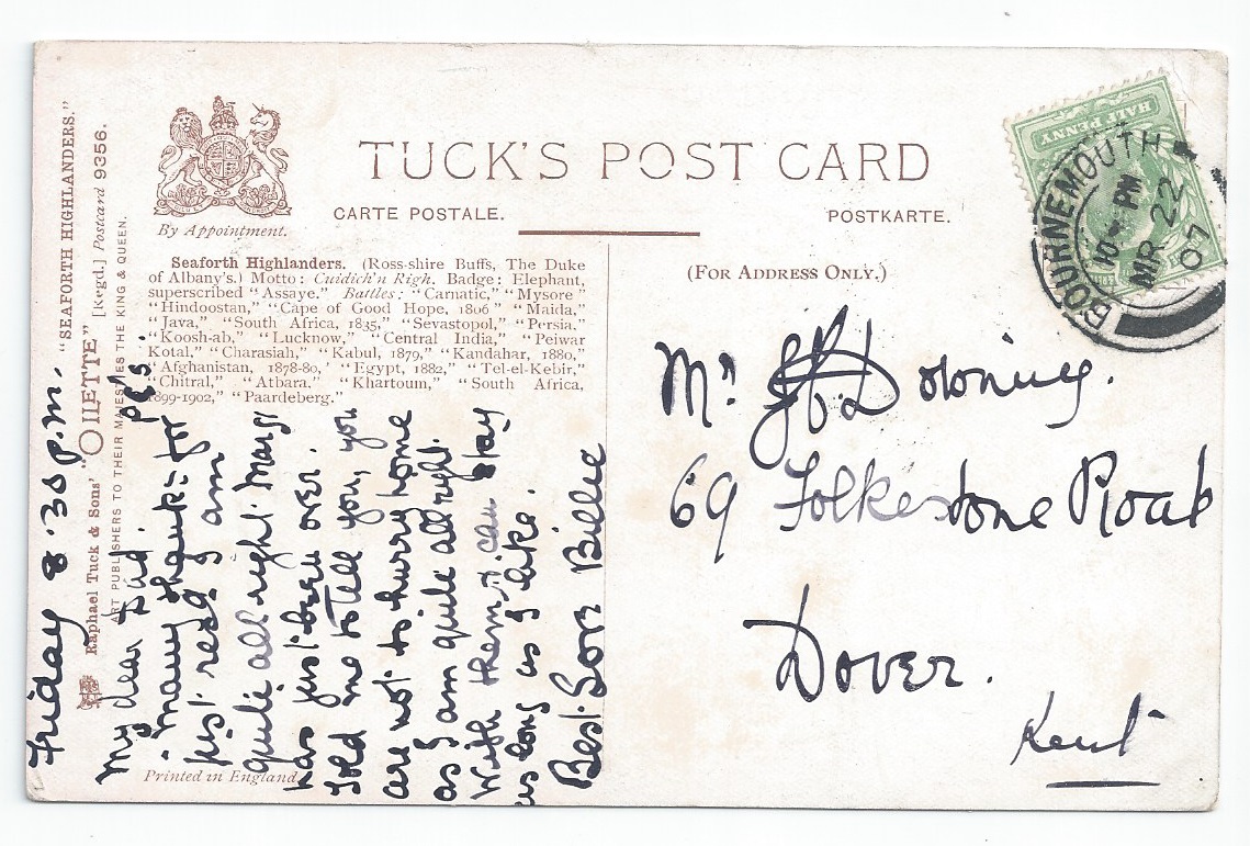 Used PC (Tuck) - Bournemouth 1907 postmark