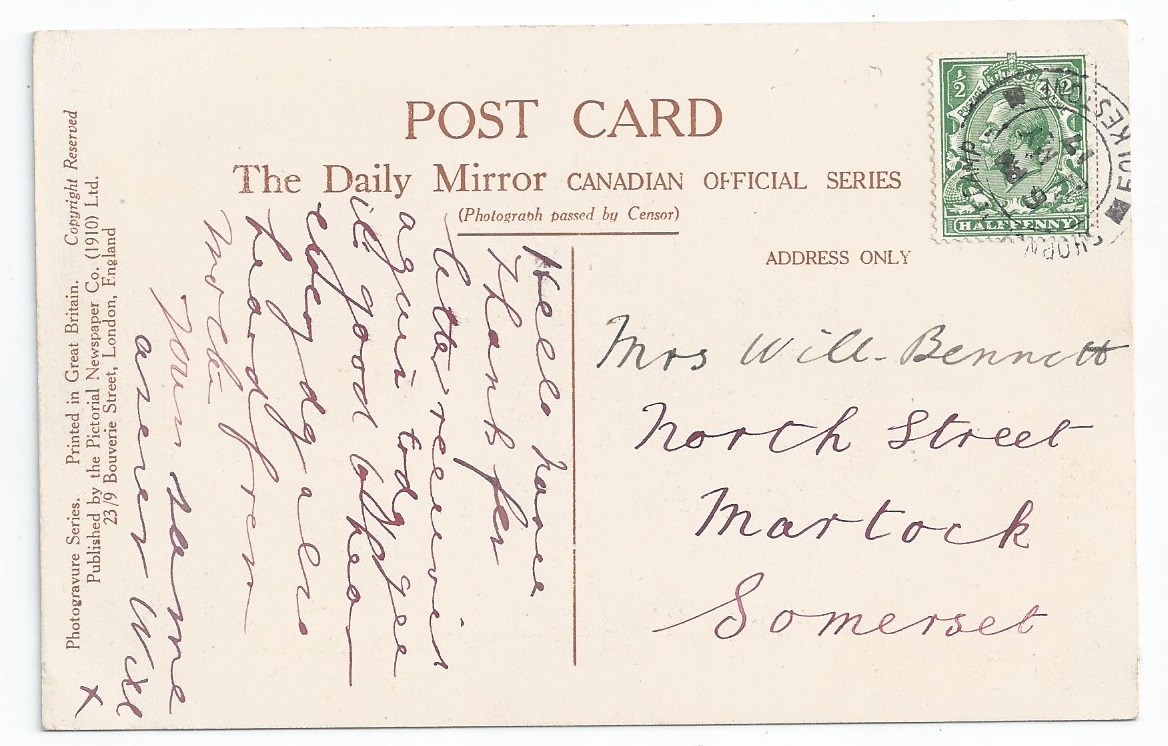 Used PC (Pictorial Newspaper Co) - Shorncliffe Camp, Folkestone 1917 postmark