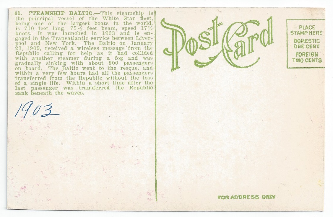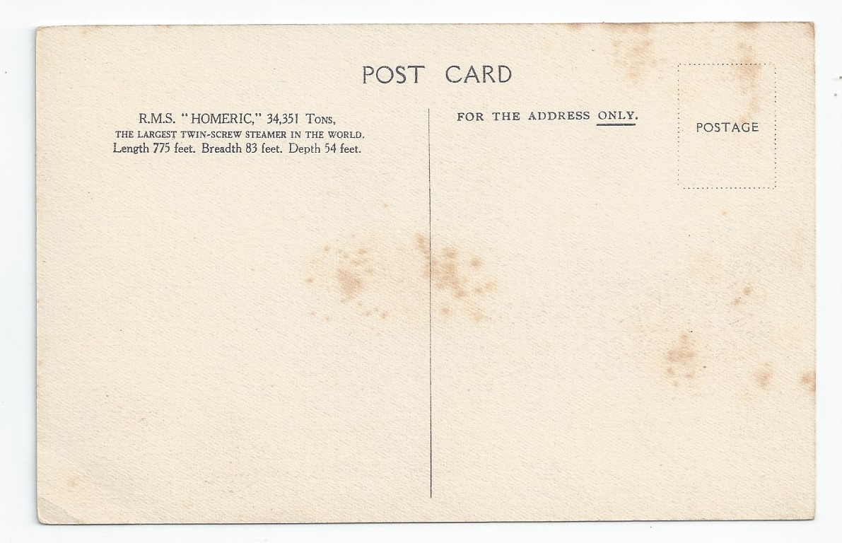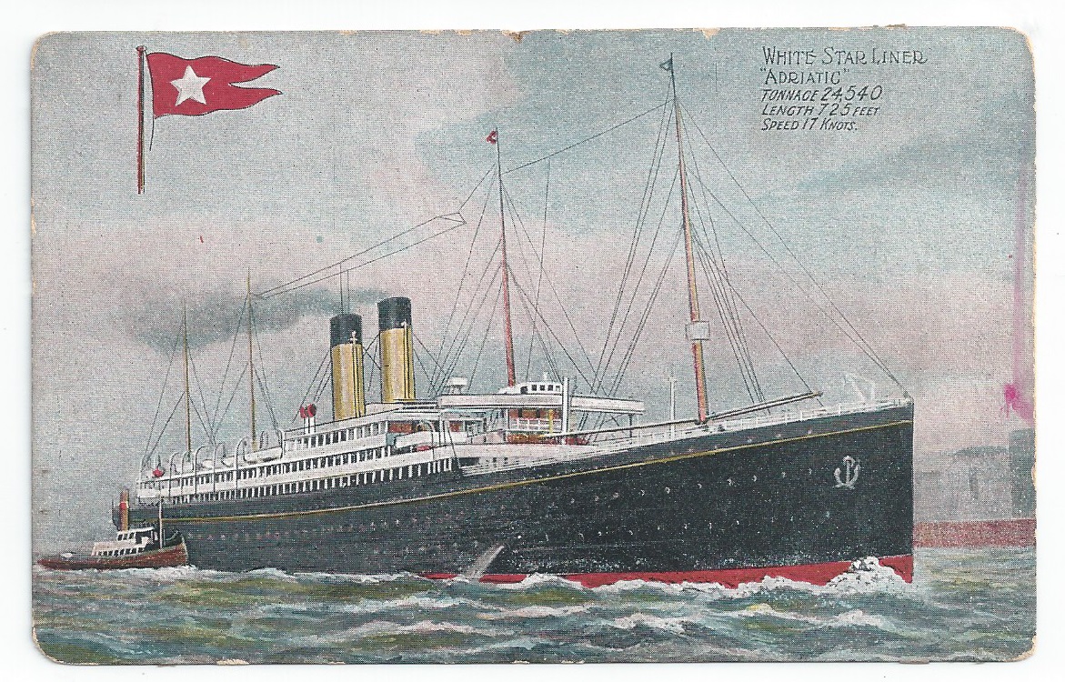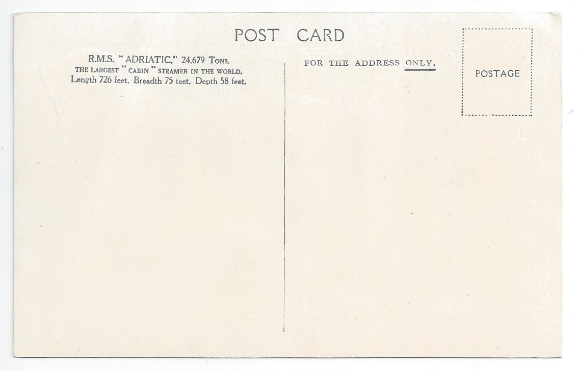 Adriatic Postcard (Valentine's Series) Southampton 1907 postmark