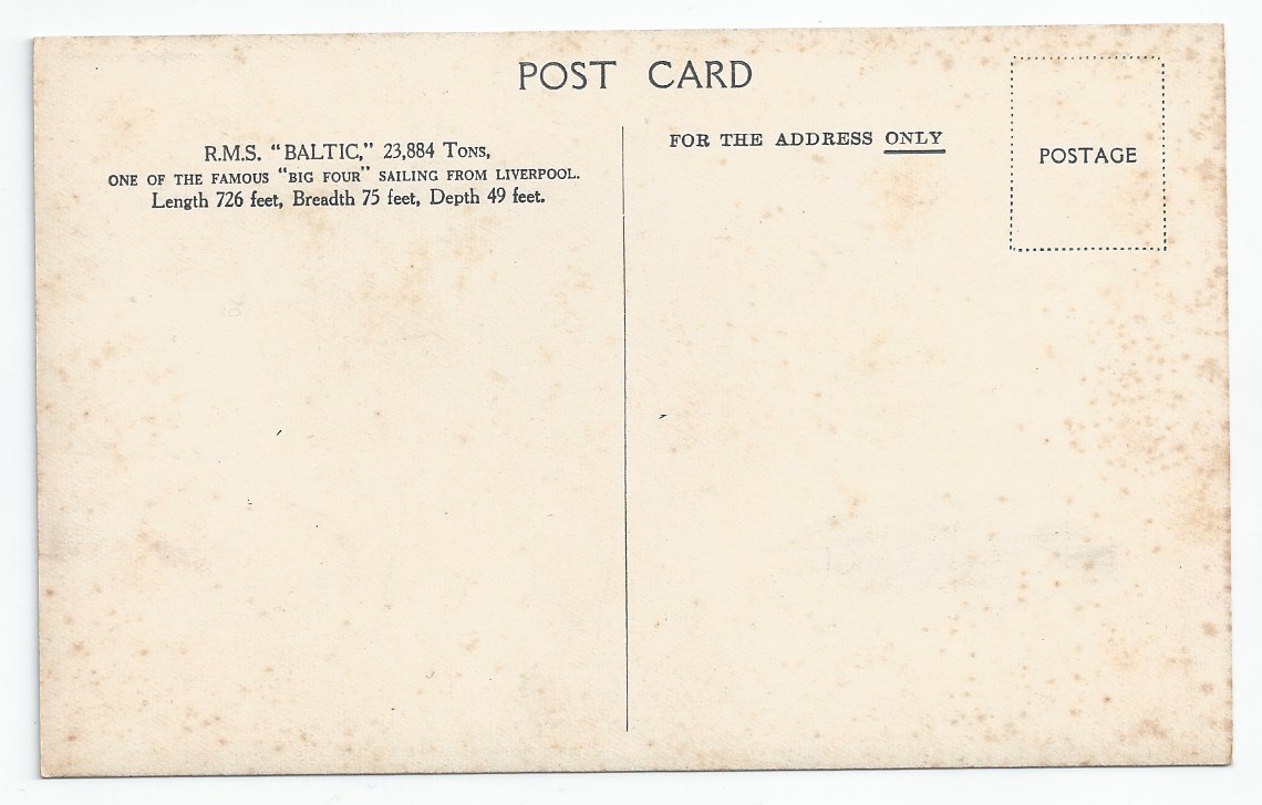 Britannic at Liverpool Real photo postcard (Valentine's)