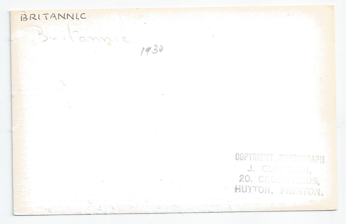 Britannic Postcard-size real photo card (J Clarkson, Hutton, Preston)