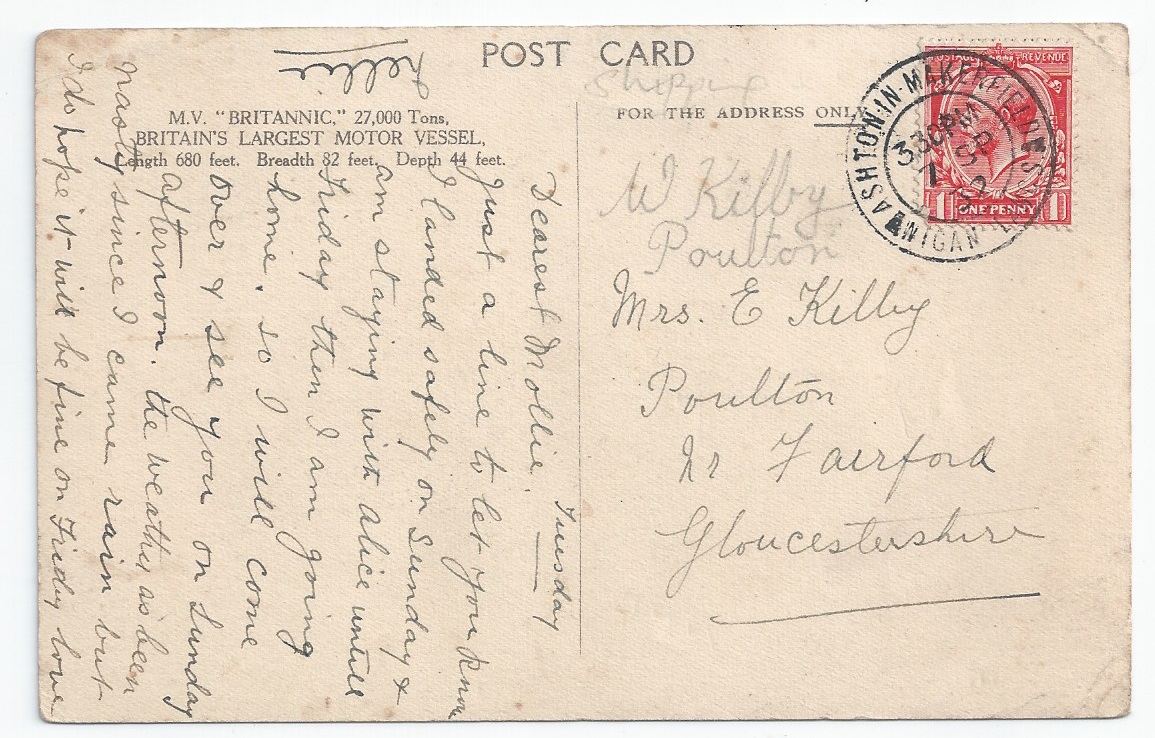 Britannic Postcard - Ashton in Makerfield, Wigan, Lancs 1932 postmark