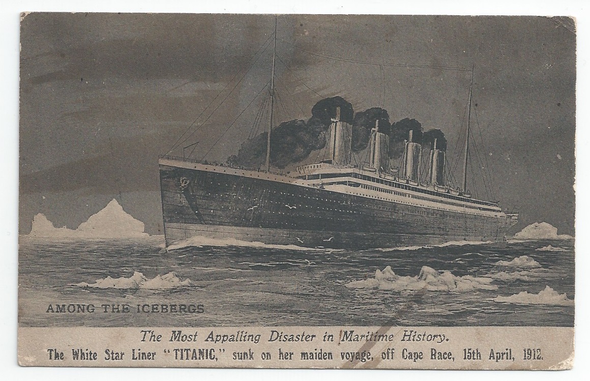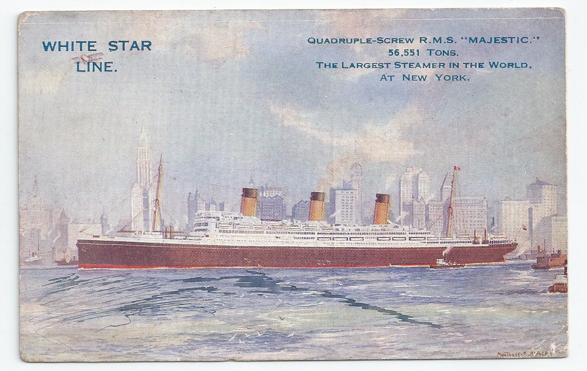 Olympic / Titanic Repro postcard Montague B Black illustration